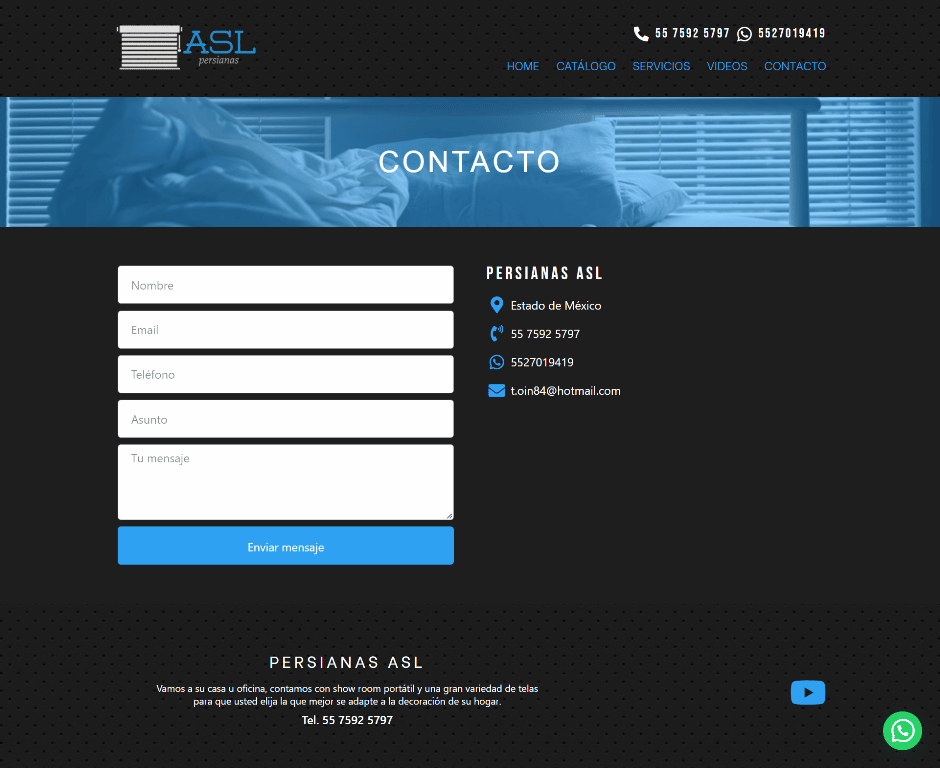 El objetivo del sitio es promover los productos y servicios que ofrece Persianas ASL facilitando a los usuarios hacer contacto.